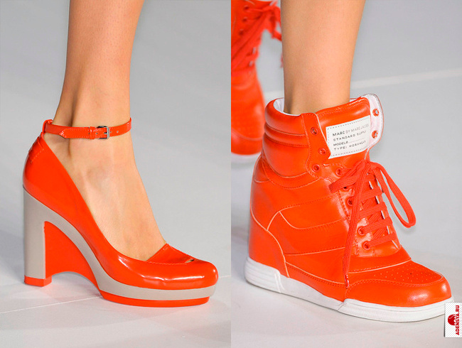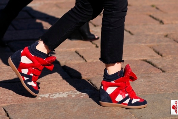 Не бойтесь экспериментировать. Сейчас просто необходимо выделяться. Самое время попробовать купить модные высокие кроссовки или обувь на танкетке, даже если раньше в вашем гардеробе не было такого и в помине. Попробуйте примерить «кроссы» не со шнуровкой, а на липучках, или же приобретите пару с необычным рисунком, стразами, пайетками или любыми другими декоративными элементами.
