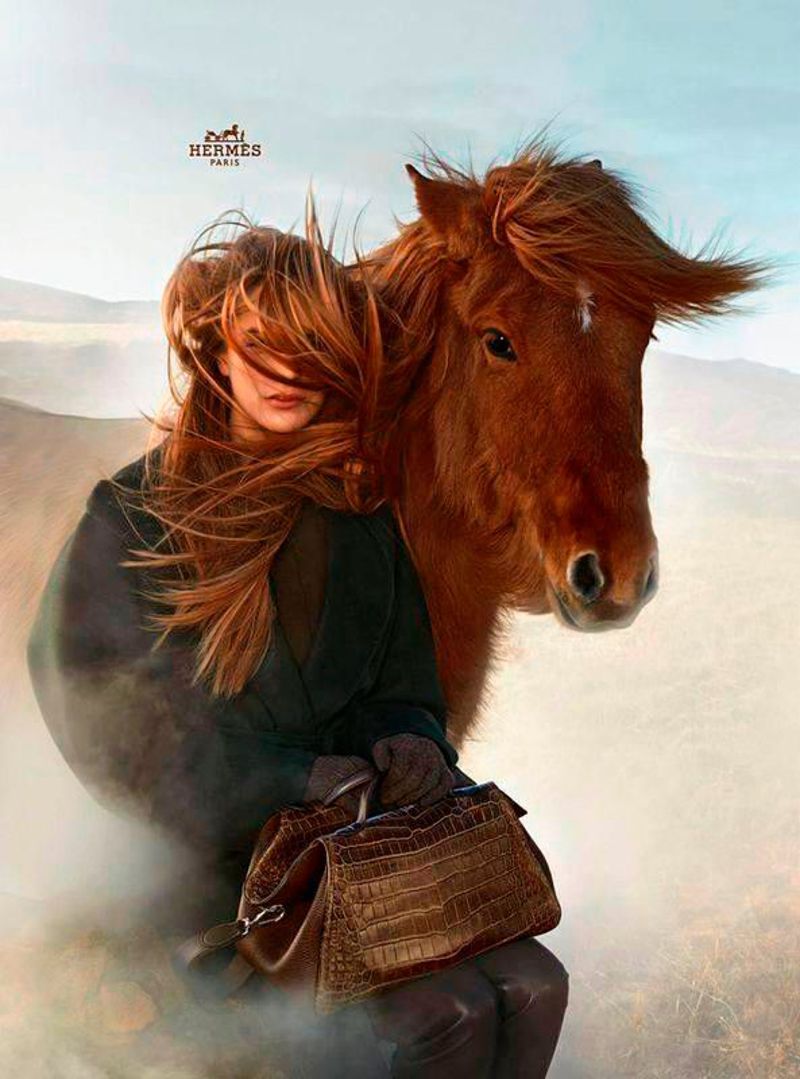 Не обошлось и без анималистической символики и в святая святых индустрии люкс – французском модном Доме Hermes. В этом случае история менее символична, чем все вышеизложенные. У Hermes лошадка на логотипе больше связана с историей основания и развития Дома, чем с качествами животного–символа. Марка ведет свою история с далекого 1837 года, с шорной мастерской, которая обслуживала парижскую аристократию. В мастерской изготавливали лучшие конные упряжи для экипажей, уздечки. Новая эмблема появилась 1951 году, когда компанию возглавил Робер Дюма. Под руководством Дюма был разработан логотип виде повозки с лошадью и выбран в качестве фирменного цвета оранжевый.