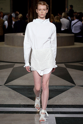 Новая весенняя коллекция от Aquilano Rimondi наталкивает на мысли о том, что вы обладаете уникальным рентгеновским зрением. Весьма интересно выглядят юбки из прозрачной органзы с заправленными в них рубашками мужского кроя, показывая стороннему наблюдателю закругленные полочки и мелкие складки, созданные поясом юбки.