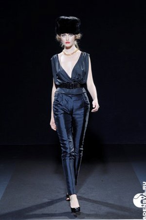 Бренд Denis Simachev — это квинтэссенция всего, что, на взгляд Запада, входит в понятие «Россия»: лубок (хохлома и гжель, меховые ушанки и бутафорские косы через плечо), революция (матросский стиль), Советский Союз (футболки «СССР», «Цой — наше все») и период новейшей истории (майки с ВВП в розах или с надписью «НЕФТЬ»).