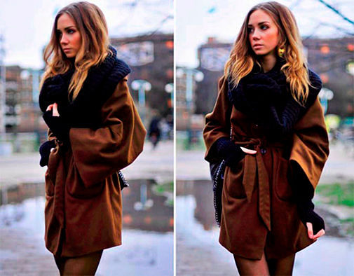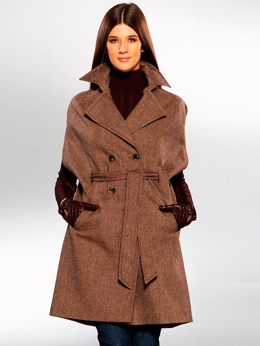 Если у вас высокий рост, вам идеально подойдет пальто-накидка. Носите его с узкими брюками и объемными свитерами. На полных дамах великолепно сидят пальто с запахом поверх строгого костюма. Пальто с коротким рукавом следует дополнить длинными перчатками, которые обязательно должны сочетаться с обувью или сумочкой.