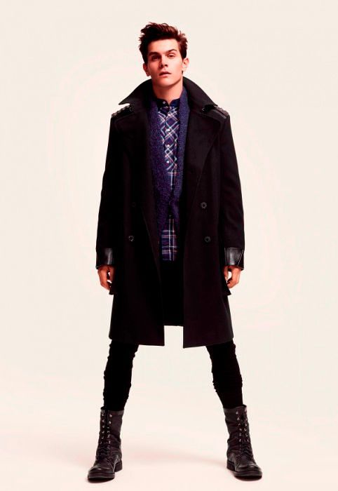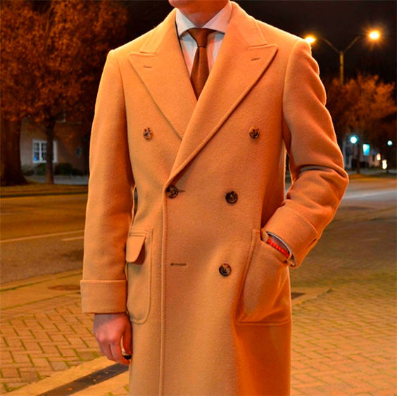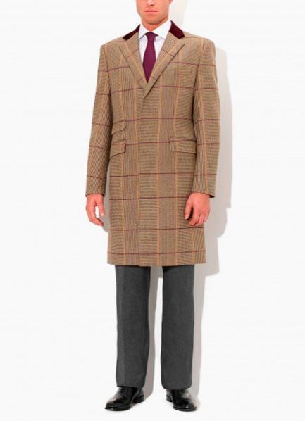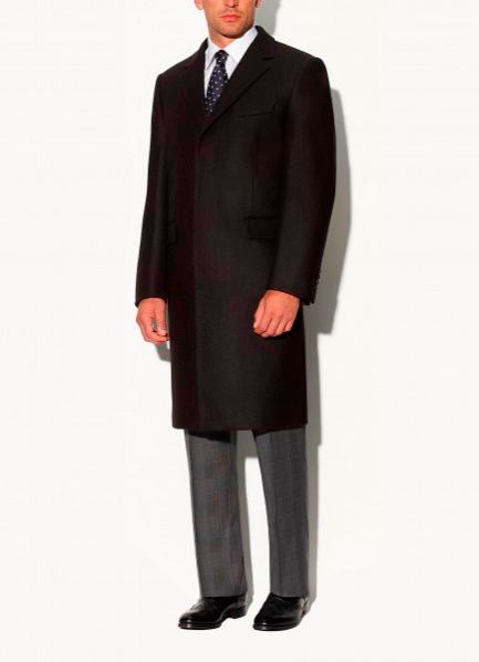 Классическое пальто в английском стиле, характерными чертами являются однобортный покрой, скрытая застежка, два кармана по бокам и один нагрудный. Лаконичные формы можно разбавить платком контрастного цвета, который вставляется в нагрудный карман. Хороший вариант для политических деятелей, деловых людей, поклонников консерватизма.