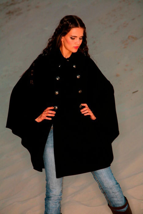 Это всегда свободный силуэт, небрежность линий, капюшон с красивой застежкой, рукав три четверти. Модель может дополняться оригинальными застежками или сборкой на рукавах.