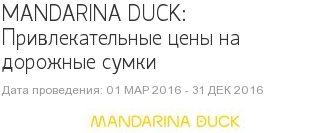 Символом компании сделали утку-мандаринку, яркое оперение которой сложно забыть. Что-то похожее происходит с вещами Mandarina Duck - попав к Вам в руки, они легко находят способ там и остаться.
